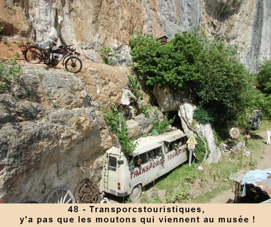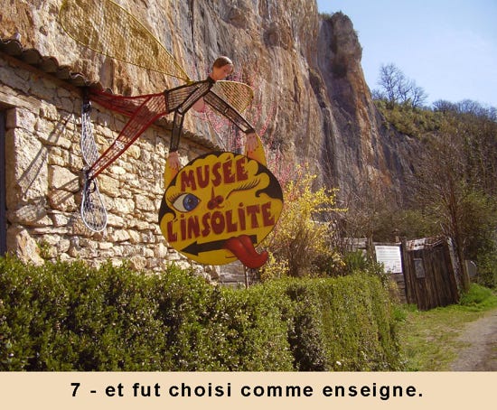Accroché à une paroi rocheuse, le Musée de l’insolite est bien cela, plein de surprise et d'étonnement. Son créateur, Bertrand Chenu, homme drolatique et inventif, vous accueille pour vous faire partager son univers. Cet artiste « hors-les-normes » transfigure l’ordinaire en monde merveilleux : poésie du banal, poésie du rebut et du moins que rien...